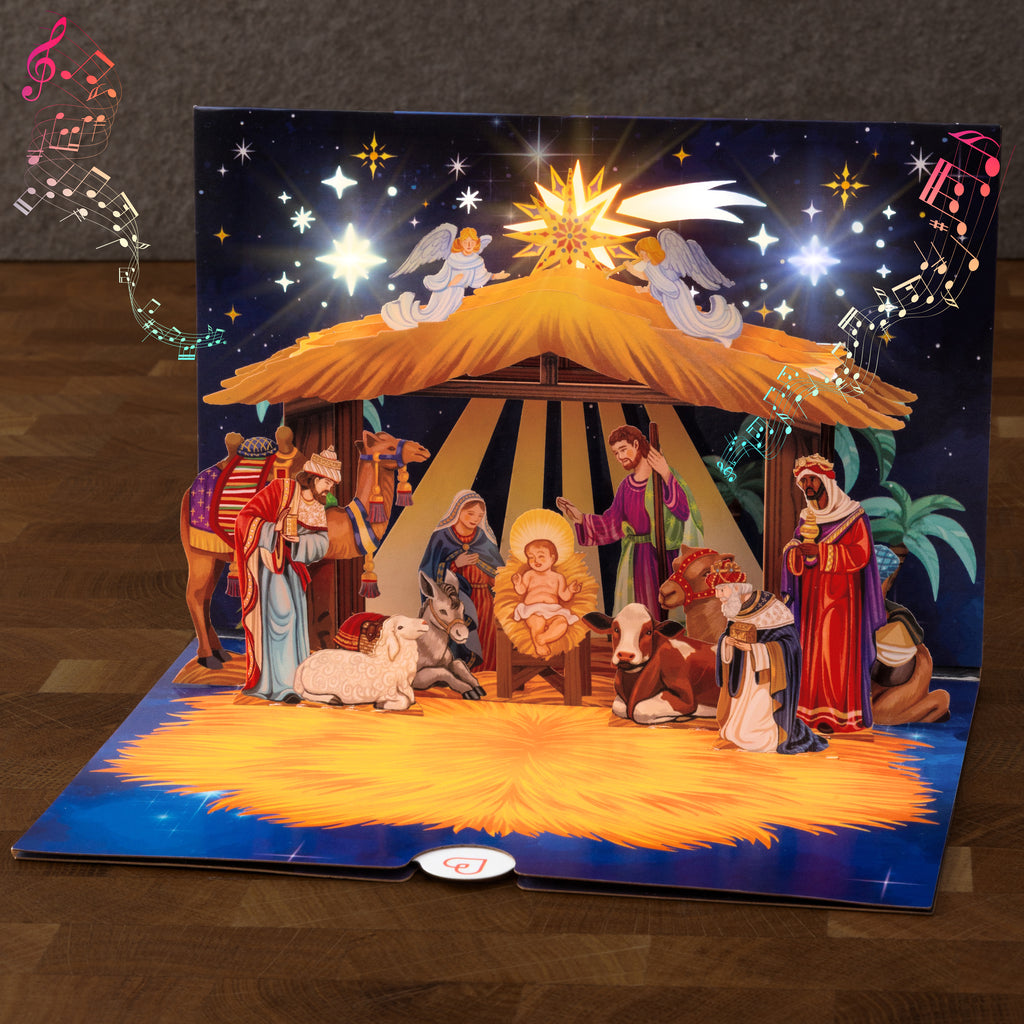 3er Set Pop-Up Weihnachtskarten mit Musik & Licht